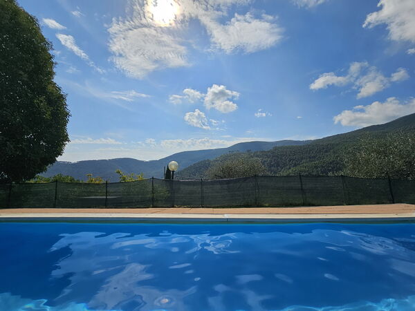 Villa "Luana" is a stunning vacation rental located in Capannori, Italy. Nestled 400 meters above sea level in the hamlet of Ruota, just 18 kilometers from the center of Lucca, this beautifully renovated detached villa offers breathtaking views of the surrounding landscape. The property features a private garden, a refreshing above-ground swimming pool (7 x 3 meters, 100 cm deep, available seasonally from 27.Apr. to 04.Oct.), an outdoor shower, garden furniture, and a barbecue area. You'll also enjoy the convenience of Internet WiFi, parking, and a yard.