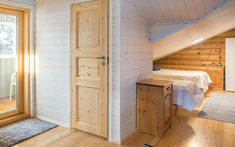 25km north of Kuusamo, Vuosseli (Eastern Ruka) 500m. Two-storey log house, additionally loft, built in 2002, area 114 m² + loft 24 m². Bedroom: 2 beds, alcove: 1 bed (120cm), alcove (folding door) on the loft: 2 beds, loft: 2 beds, downstairs room with fireplace: sofabed, living room: sofabed, kitchen, electric sauna.