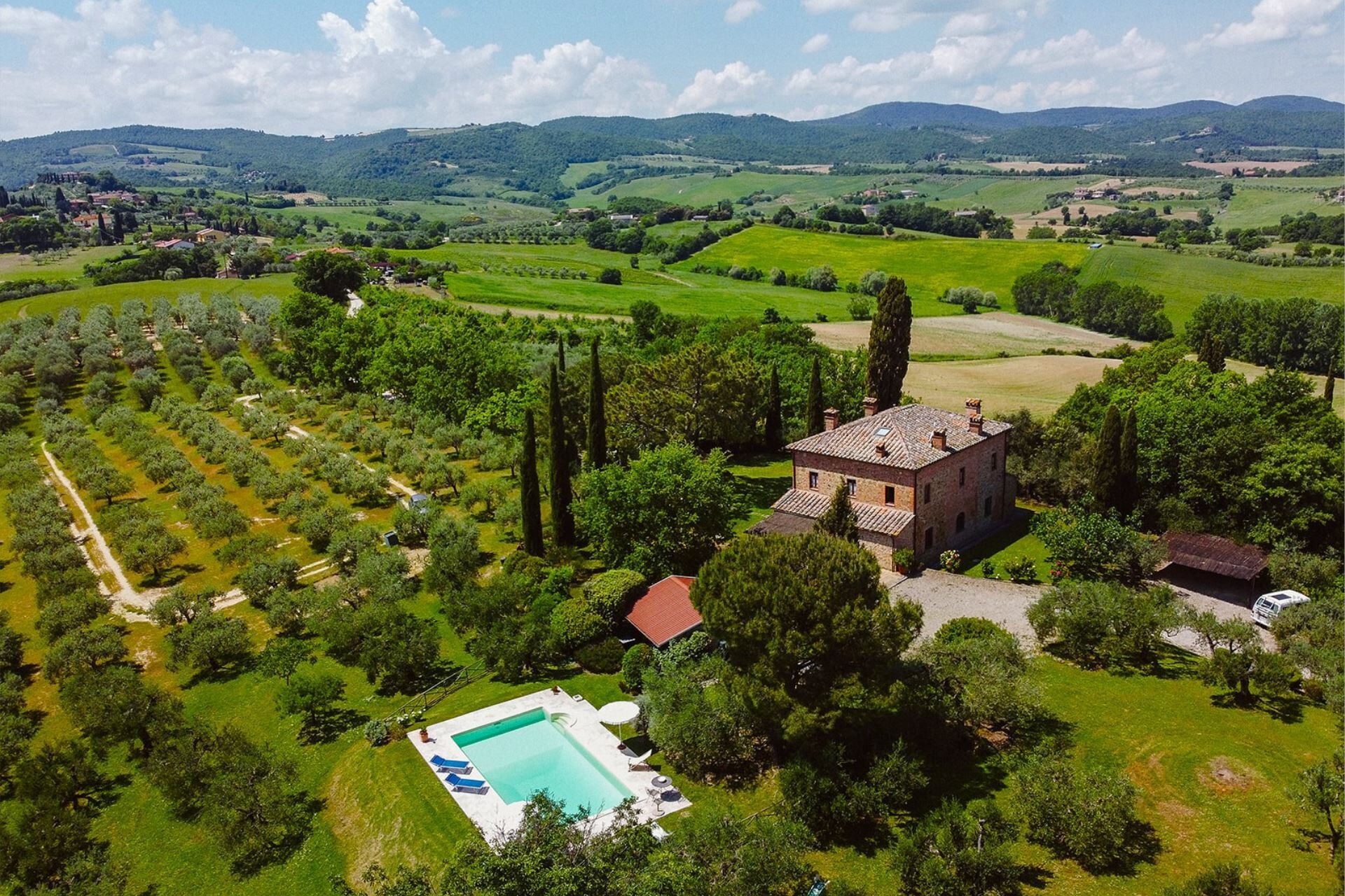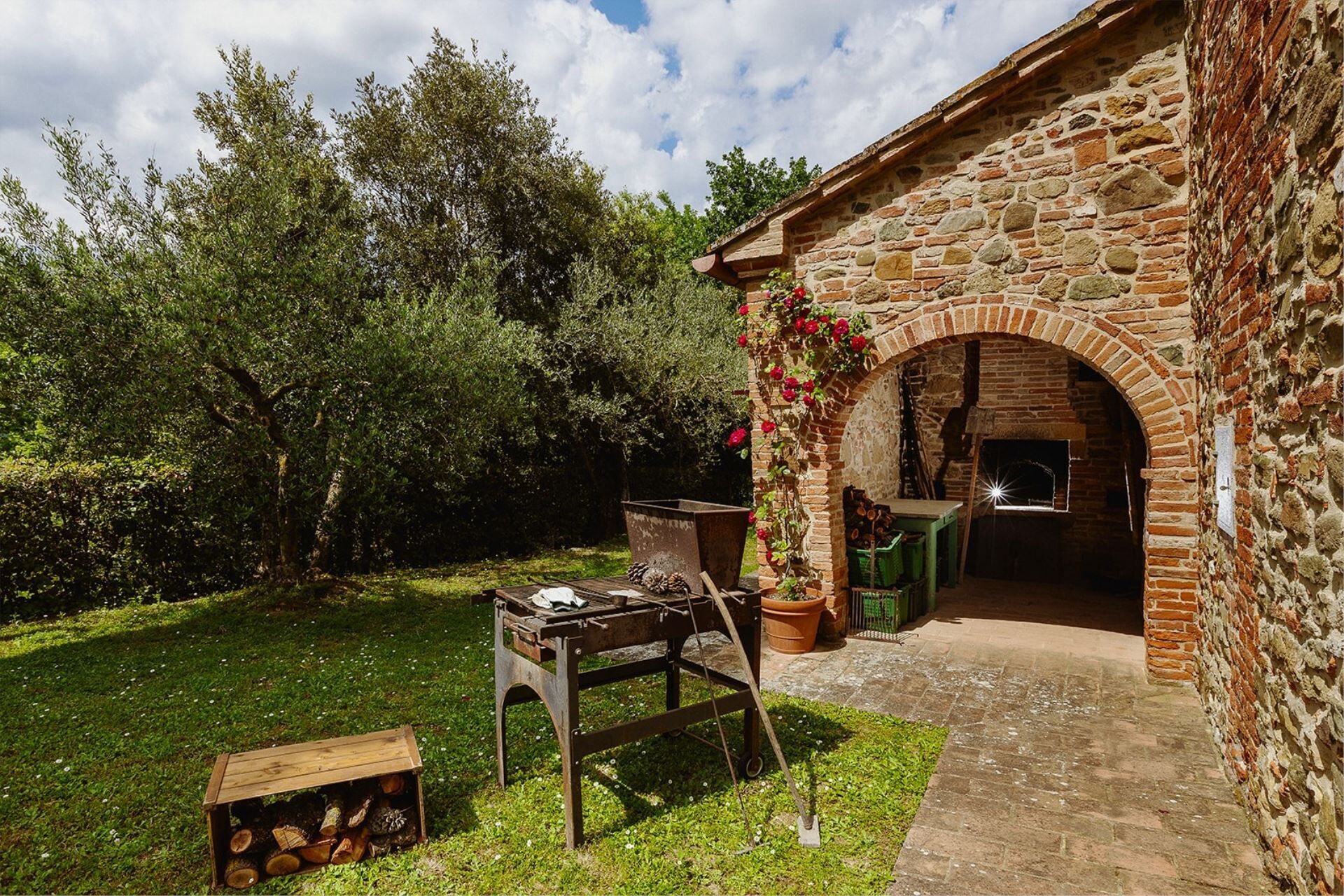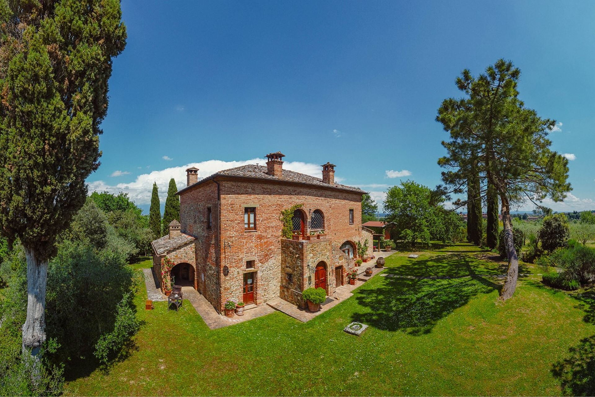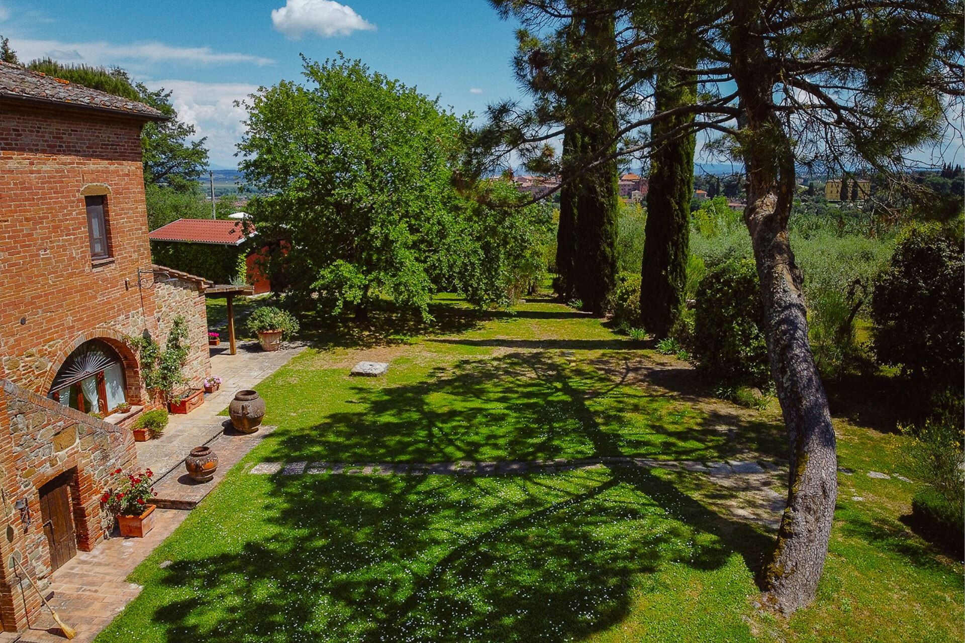 A spacious garden hugged by cypresses and other densely green trees, views of rolling hills and lush Tuscan landscapes all around, a private pool, a terracotta roof, a pretty and traditional Tuscan kitchen, charming bedrooms finished with detail and care, high exposed-beam ceilings, a nice little covered area for dining al fresco, lots of rooms with direct exits out onto the terrace... all of this and more is what you can expect from the gorgeous and wonderfully and typically Tuscan Villa La Fragola (meaning Strawberry Villa) just 500m outside the village of Chianacce, 19km (12 miles) from Montepulciano. Positioned in an especially scenic and peaceful part of the world that is ideal for those looking to get away from it all and relax on their vacation, this gem allows you to get a real taste of the charming and slow-paced life of rural Tuscany while also being ideally located just 5km from the highway and allowing easy access to many of the region’s most famous destinations and attractions. Those who choose Villa La Fragola, therefore, will get the best of both worlds – the restful escape into the dreamy Tuscan countryside and plenty of opportunities to play the serious tourist and tick some key sights off of your bucket list. In addition to Montepulciano being just 19km (12 miles) away, other nearby cities include Cortona 20km (12 miles) away, Arezzo 45km (28 miles) away, Montalcino 52km (32 miles) away, and Perugia 62km (39 miles) away.