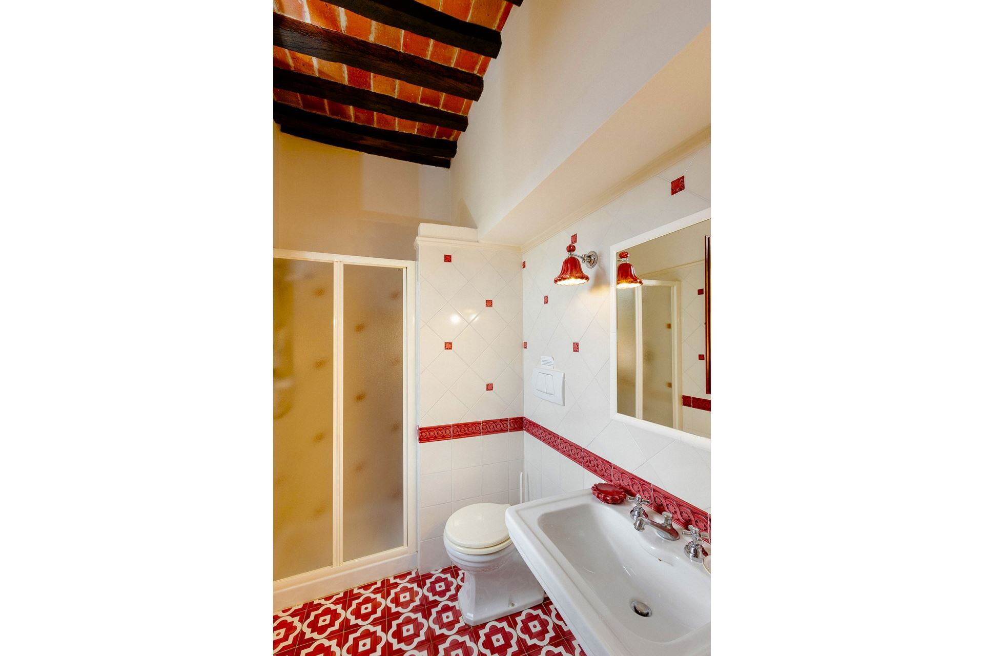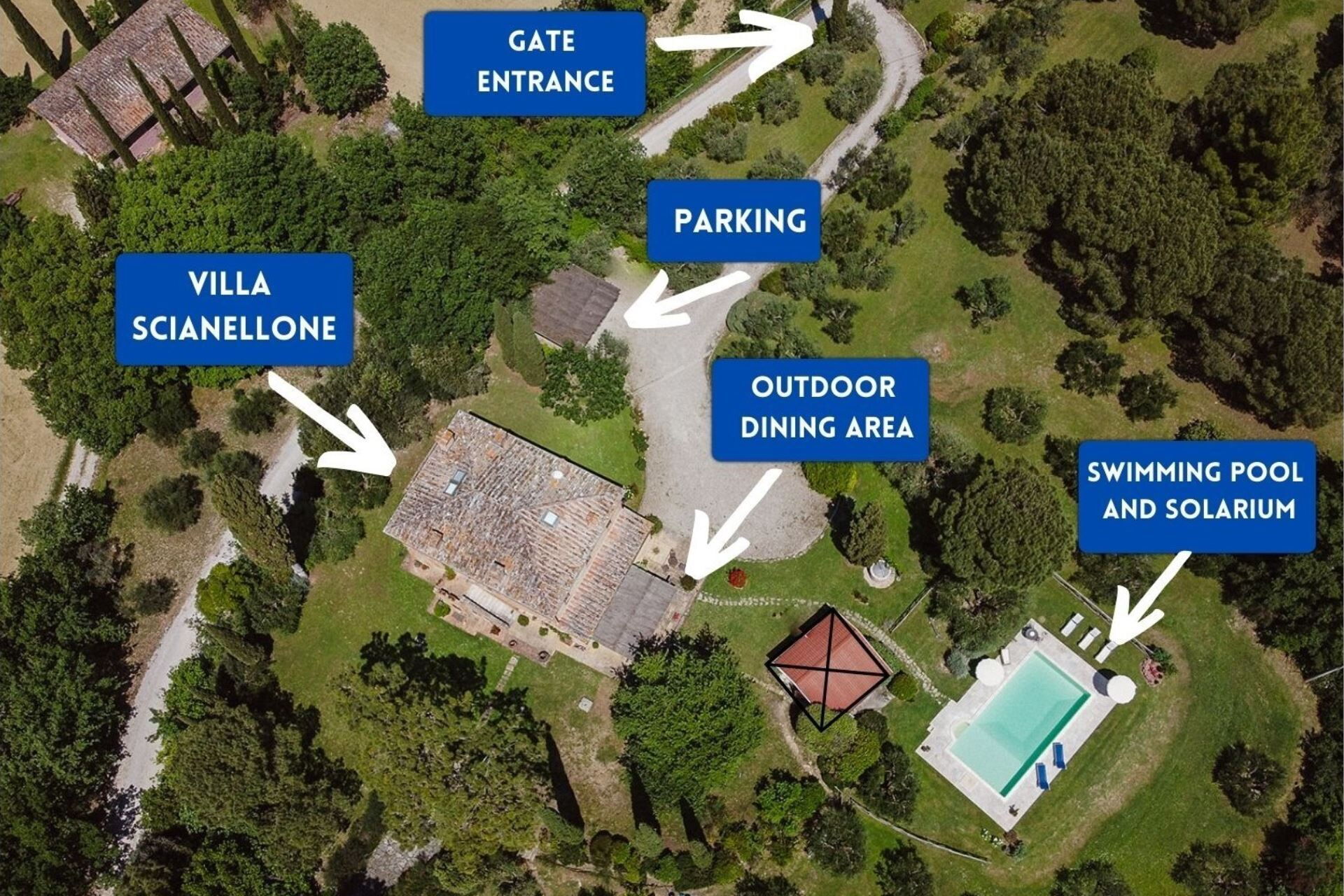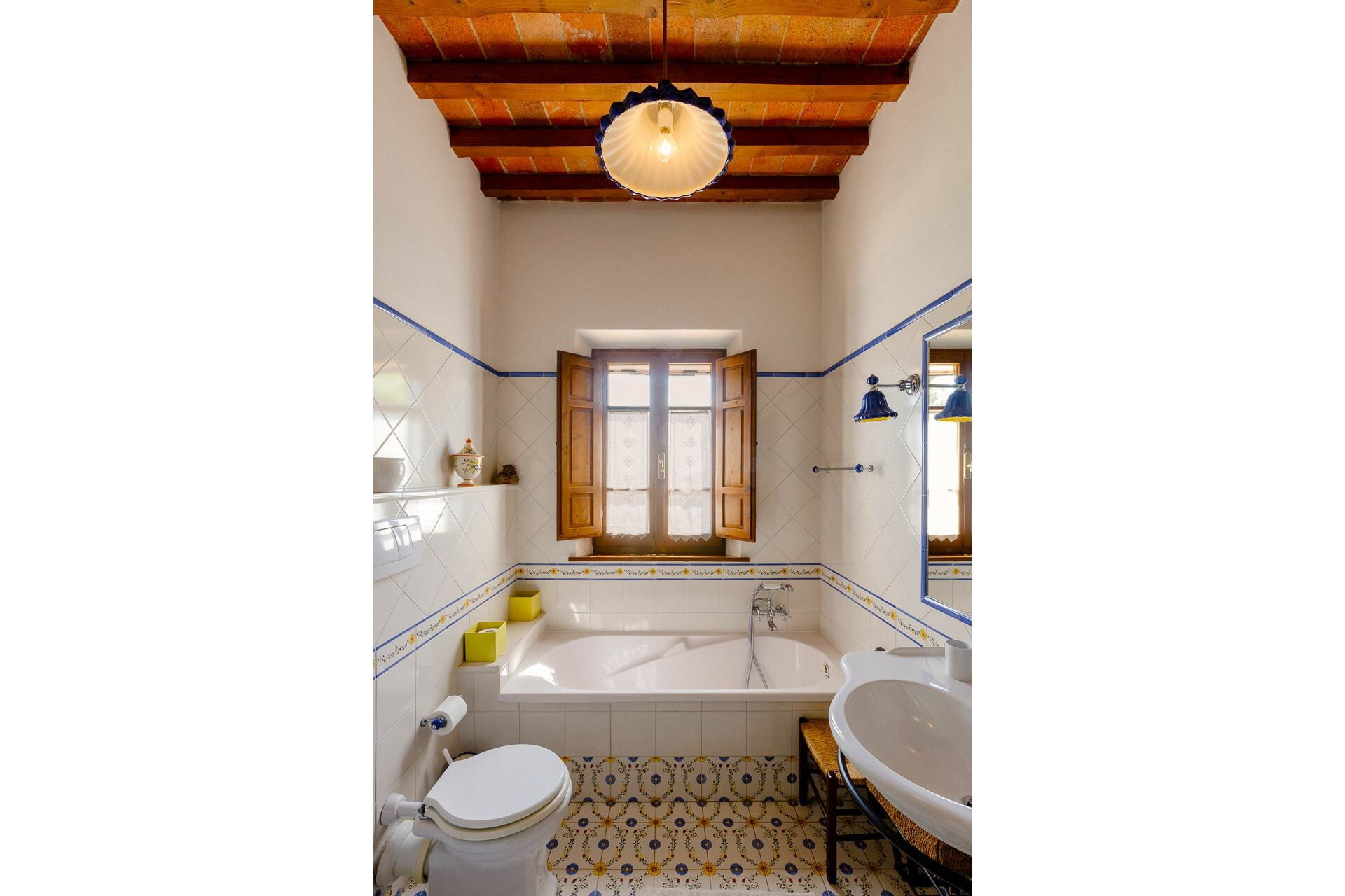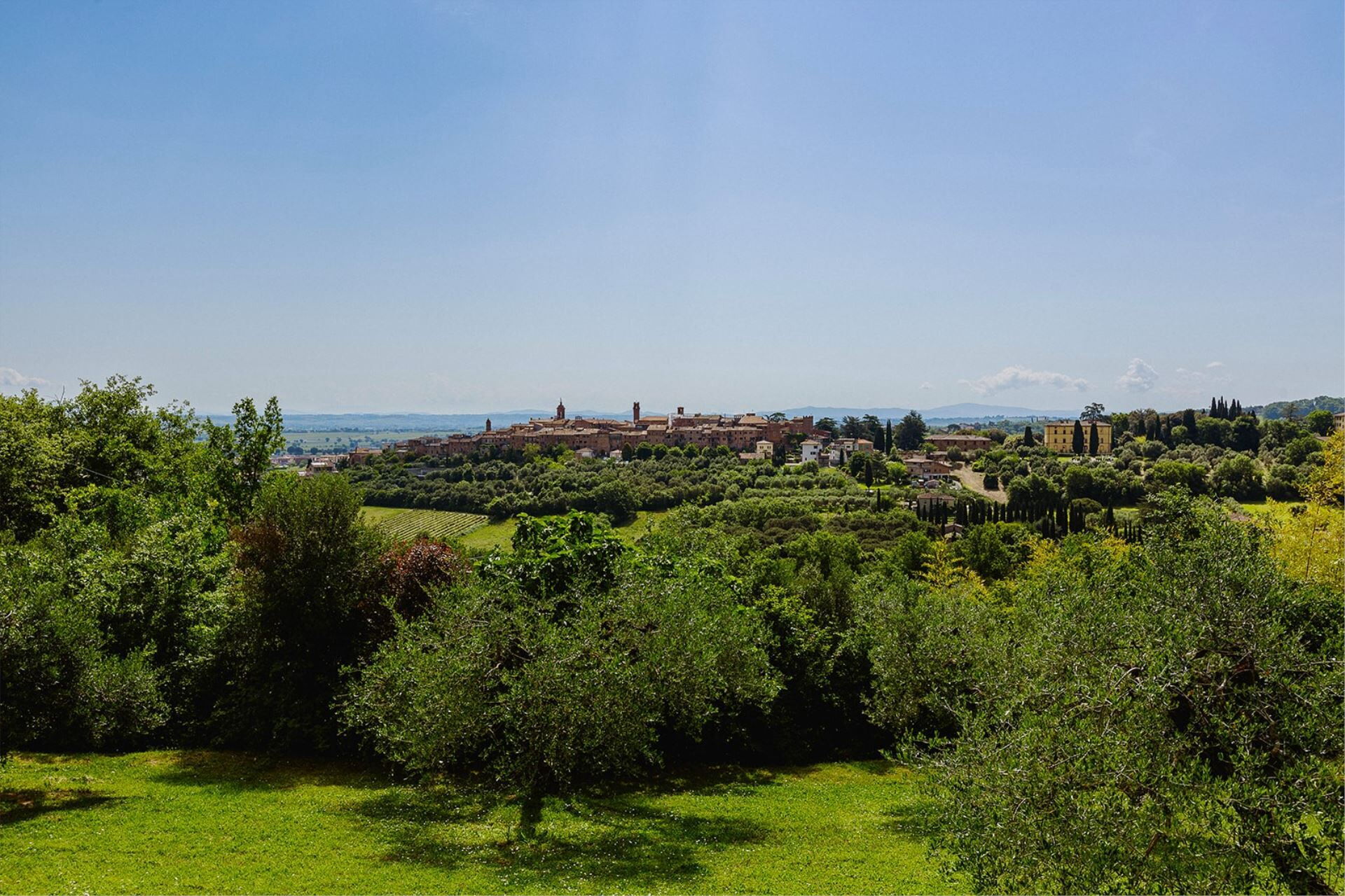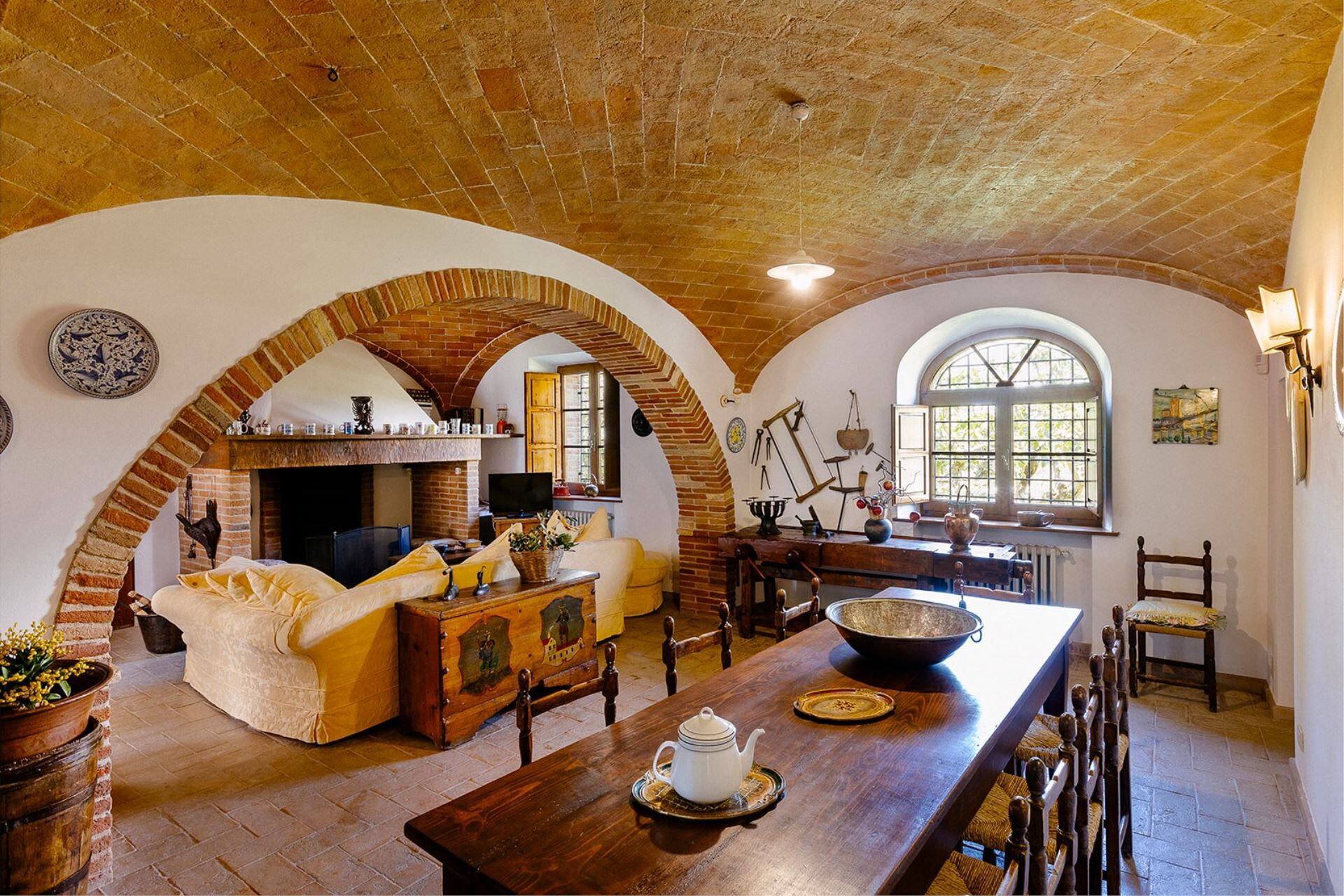 A spacious garden hugged by cypresses and other densely green trees, views of rolling hills and lush Tuscan landscapes all around, a private pool, a terracotta roof, a pretty and traditional Tuscan kitchen, charming bedrooms finished with detail and care, high exposed-beam ceilings, a nice little covered area for dining al fresco, lots of rooms with direct exits out onto the terrace... all of this and more is what you can expect from the gorgeous and wonderfully and typically Tuscan Villa La Fragola (meaning Strawberry Villa) just 500m outside the village of Chianacce, 19km (12 miles) from Montepulciano. Positioned in an especially scenic and peaceful part of the world that is ideal for those looking to get away from it all and relax on their vacation, this gem allows you to get a real taste of the charming and slow-paced life of rural Tuscany while also being ideally located just 5km from the highway and allowing easy access to many of the region’s most famous destinations and attractions. Those who choose Villa La Fragola, therefore, will get the best of both worlds – the restful escape into the dreamy Tuscan countryside and plenty of opportunities to play the serious tourist and tick some key sights off of your bucket list. In addition to Montepulciano being just 19km (12 miles) away, other nearby cities include Cortona 20km (12 miles) away, Arezzo 45km (28 miles) away, Montalcino 52km (32 miles) away, and Perugia 62km (39 miles) away.