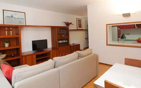 This vacation apartment is designed for families and responsible adults over 25 years old, making it an ideal choice for a comfortable and relaxing getaway. The upper level consists of two bedrooms: one with a French bed and an electric heater, and another with a bunk bed suitable for two people, also with an electric heater. There is a shower and toilet on this level as well. Please note that smoking is not permitted within the premises.
