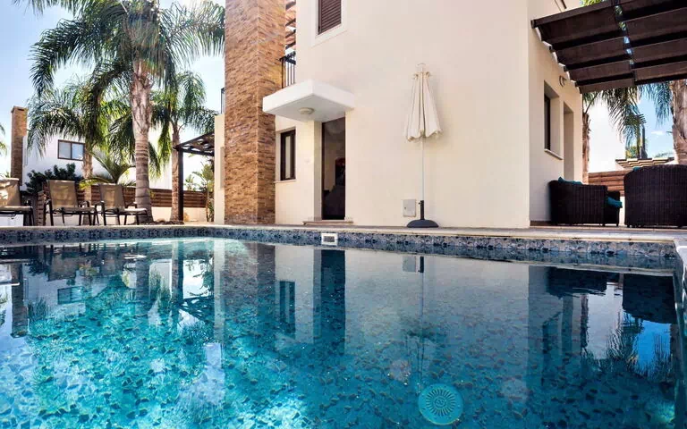 Access & Parking: private parking. All-season motor access to the house. Situation: in the centre of Ayia Thekla, on the outskirts of Ayia Napa, quiet position. View from the apartment of the sea and the garden.