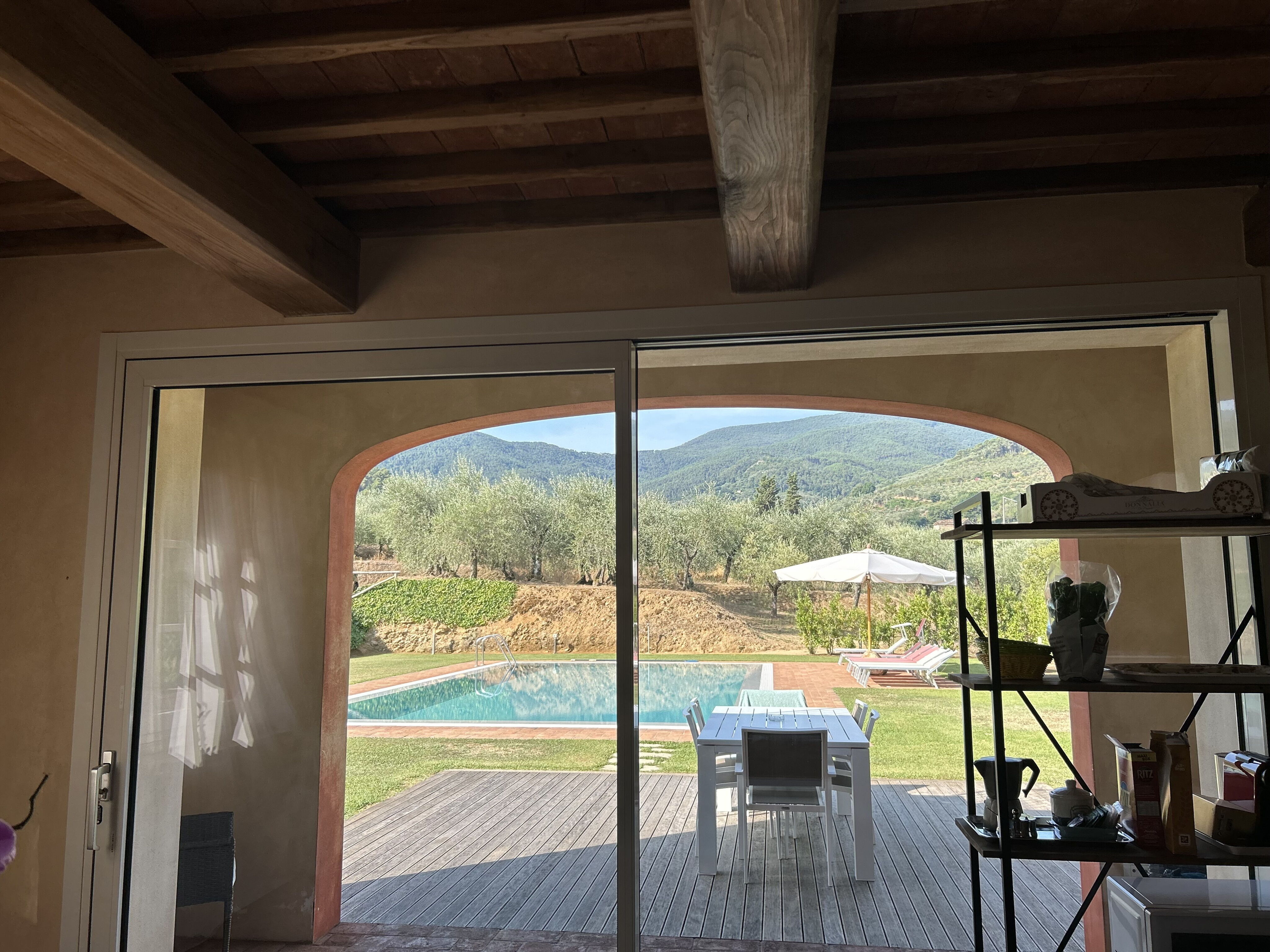 Excellent séjour. Les propriétaires sont adorables et très disponibles. La maison est agréable. Très propre. La climatisation est douce et silencieuse. La cuisine est fonctionnelle. Les 2 chambres avec grand lit sont confortables même si les lits sont un peu courts (140x190 et 160x190). La 3 e chambre est un peu étroite avec des lits 80 de large. Convient à des enfants. Très utile les serviettes de piscine et très agréable la piscine. Peut être un 2e parasol ou une toile serait bienvenu.
